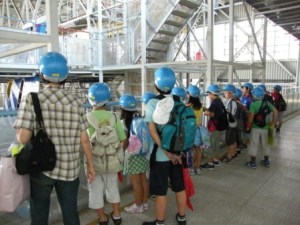 いよいよ見学です。「でっかいね─!」「これ、本物なんだ!」ヘルメットを着けた子どもたちは感嘆の声をあげていました。